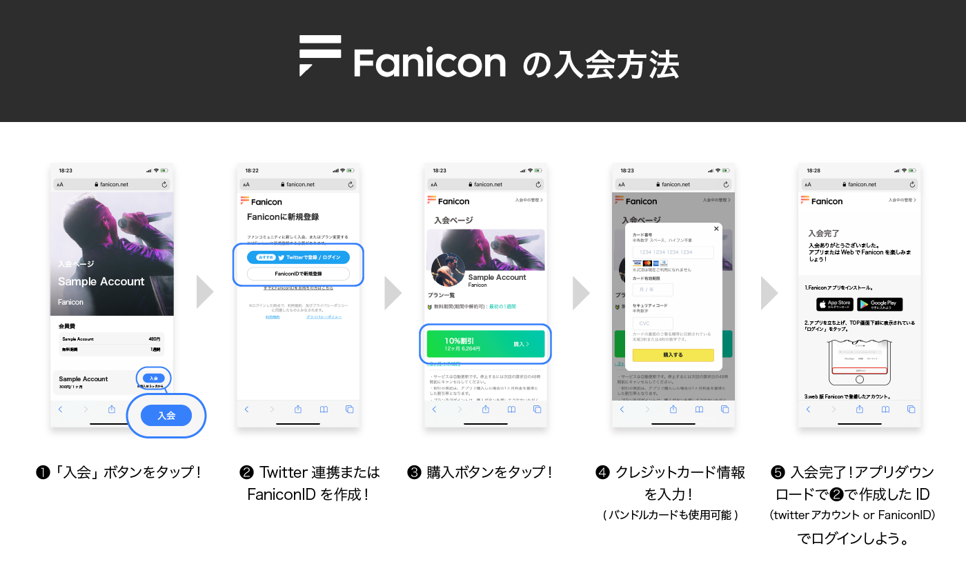 ご入会時に連携したTwitter ID / 作成したFanicon IDはお忘れないようにご注意ください。