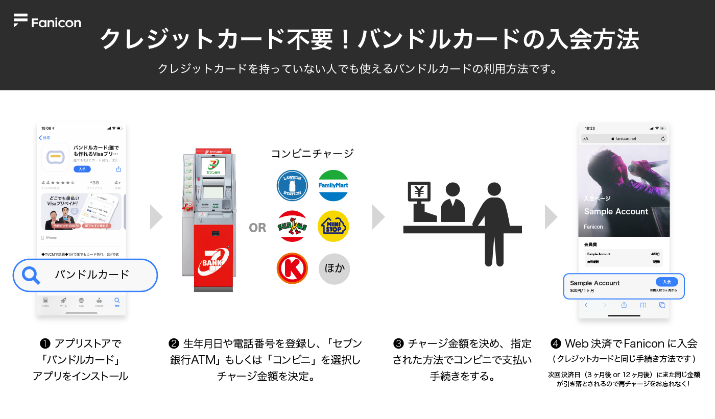 クレジットカード(JCBを除く)、プリペイドカード、バンドルカードのいずれかをご利用ください。